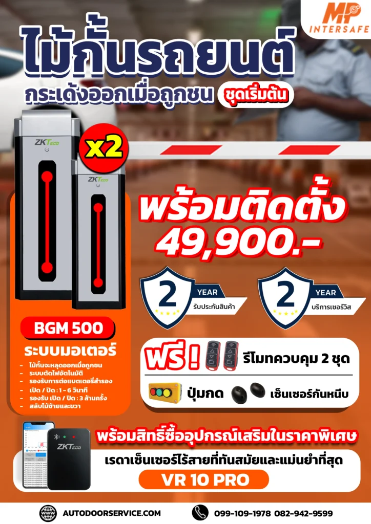 Autodoorservice ให้บริการติดตั้งไม้กั้นรถยนต์และระบบบริหารจัดการที่จอดรถยนต์ที่ได้มาตรฐานสากล เหมาะสำหรับหมู่บ้าน ห้างสรรพสินค้า โรงแรม และคอนโดมิเนียม ด้วยประสบการณ์และความเป็นมืออาชีพ PPowerSolar ได้รับการแต่งตั้งให้เป็นตัวแทนจำหน่ายอย่างเป็นทางการจาก ZKteco และมั่นใจในคุณภาพของผลงานติดตั้งทุกโครงการ พร้อมให้การรับประกันสินค้าและบริการหลังการขายเป็นระยะเวลา 2 ปีเต็ม เพื่อให้ลูกค้าได้รับความคุ้มค่าและความมั่นใจสูงสุดในการใช้งาน